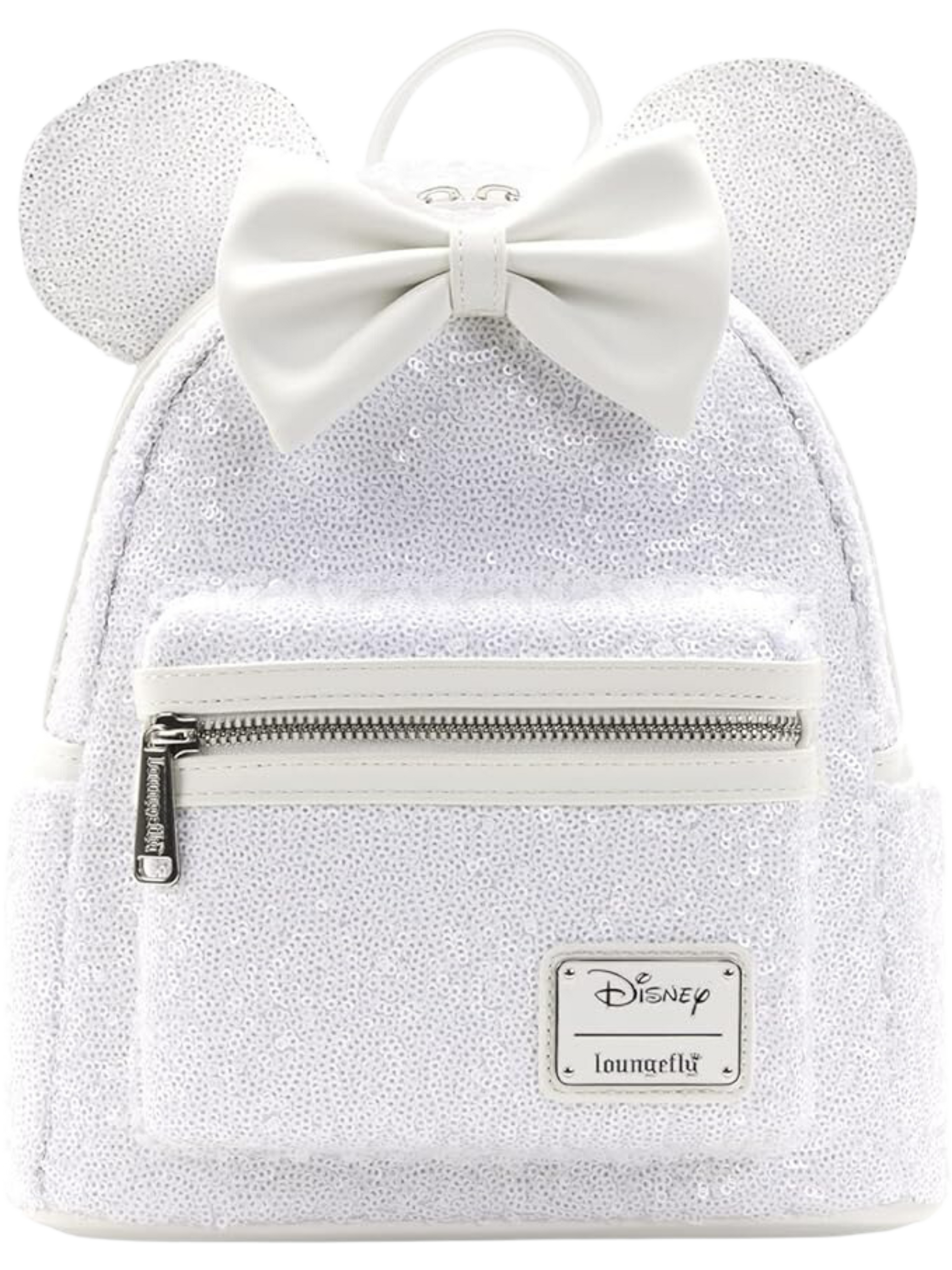 Algo nuevo. Es posible que no estés planeando caminar por el pasillo llevando una bolsa. Pero, si estás pensando en comerciar con flores tradicionales, esta mini mochila de boda con lentejuelas de Minnie Bow de Disney es una elección perfecta. Muestra tu amor de Loungefly en tu gran día, o añade este impresionante accesorio a tu colección para todos los pequeños eventos y trajes previos a la boda que tienes en el calendario. Detalles divertidos: la mini mochila con licencia oficial está hecha con una carcasa de piel sintético blanco brillante y cubierta de lentejuelas blancas brillantes. Los detalles cuidadosos dejan el hardware de metal, la placa de identificación de la firma de Loungefly y un lazo desmontable de Minnie Mouse en blanco a juego. El gran bolsillo principal ofrece un montón de espacio para lo esencial, ya sea que estés fuera para una última aventura o para ir a tu luna de miel. Mientras tanto, el bolsillo frontal más pequeño garantiza que los recuerdos más pequeños, como ese brillo brillante, tengan un espacio dedicado mientras estás en una aventura. - Mochila - Lazo